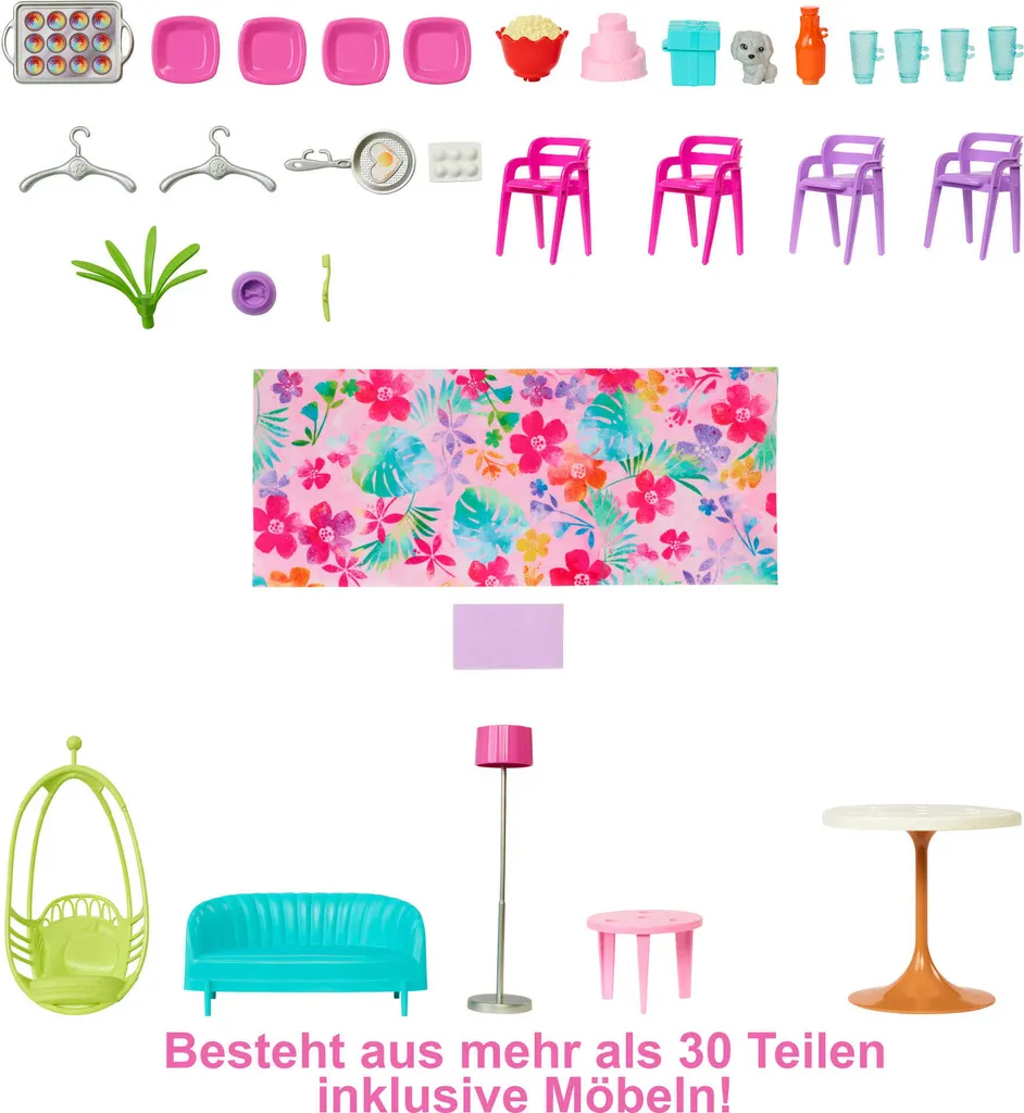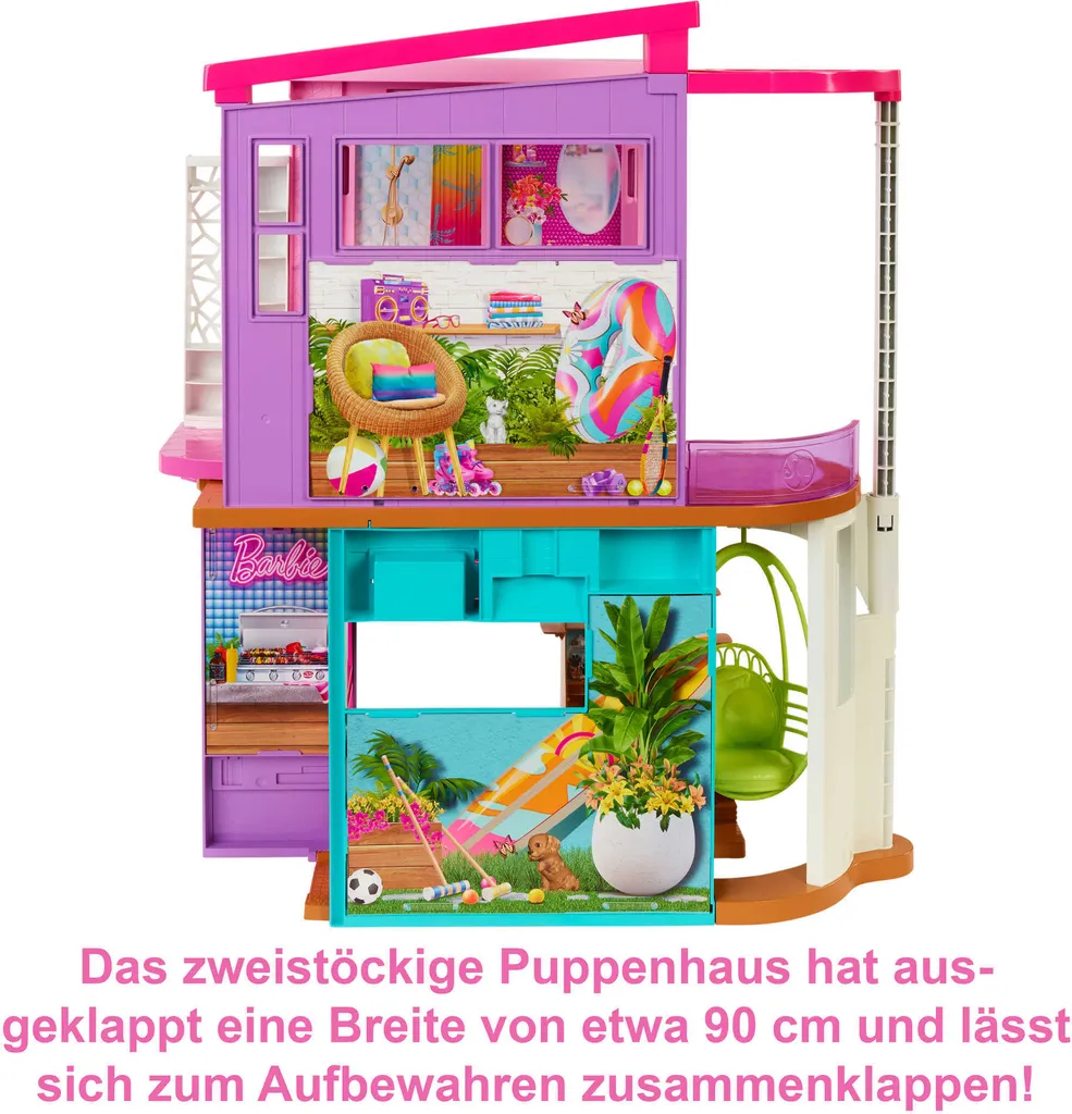 Barbie Malibu Ferien-Haus (klappbar), Puppenhaus Inkl. Möbel & Zubehör