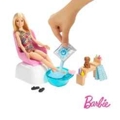 Barbie Mani-Pedi Puppe (blond) Spielset, Anziehpuppe, Nagelstudio Mit Zubehör