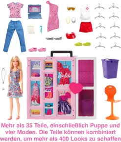 Barbie Traum-Kleiderschrank Mit Puppe (blond), Zubehör & Kleidung