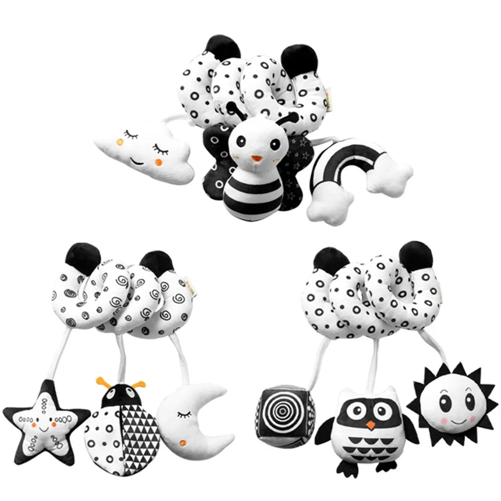 Eule Spiral Hängend Krippe Bett Herum Mit Glocke Spielzeug Baby Schwarz Weiß Eye Sensing Quietscher Puppe Babyspielzeug